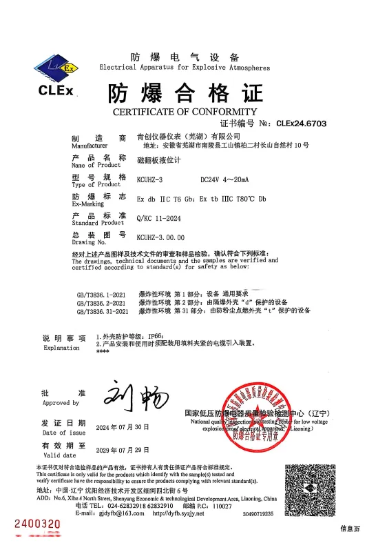 ООО Уху Кэньчуань Прибор было создано в 2018 году ООО Шанхай Кэньчуань Прибор в соответствии с производственными и бизнес-потребностями. Компания в основном производит и продает полевые приборы и приборы отображения и управления, такие как датчики давления, радарные уровнемеры, магнитные перекидные уровнемеры, интегрированные датчики температуры, электромагнитные расходомеры. Являясь высокотехнологичным предприятием Уху, продукция компании получила сертификаты системы качества ISO9000, взрывозащиты, SIL и другие. Одновременно предоставляет профессиональные консультации по подбору моделей полевых приборов и технические услуги, удовлетворяя потребности клиентов с наиболее подходящей продукцией и высочайшим качеством обслуживания.